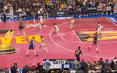 第二节,开节段掘金约基奇下场休息,勇士抓住机会格林、巴特勒、波斯特连续中远投命中一波10-0追至1分分差,掘金立刻暂停调整,穆雷、瓦兰联手持续三分雨,勇士则是持续哑火近5分钟仅依靠斯潘塞得到3分,掘金一波21-3将分差拉大至21分,随后勇士终于进攻回暖,波杰姆斯基、希尔德相继得分,节末掘金依旧保持火热手感穆雷、约基奇接连三分,好在勇士理查德站出来连续得分咬住分差,半场战罢,掘金66-49勇士。