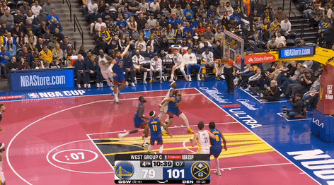 北京时间11月8日,NBA常规赛季中NBA杯小组赛,掘金主场迎战勇士,本场勇士库里、霍福德缺阵。开场勇士进攻低迷,掘金迅速建立两位数领先,次节初勇士一度迫近比分,但掘金穆雷领衔持续三分雨一波21-3再度拉大分差,半场掘金66-49勇士,第三节上来勇士格林连续三分掀起反扑势头,但掘金约基奇、戈登、穆雷联手迅速浇灭勇士反扑将分差拉大至20分以上,末节早早进入练兵时间,最终掘金129-104大胜勇士。